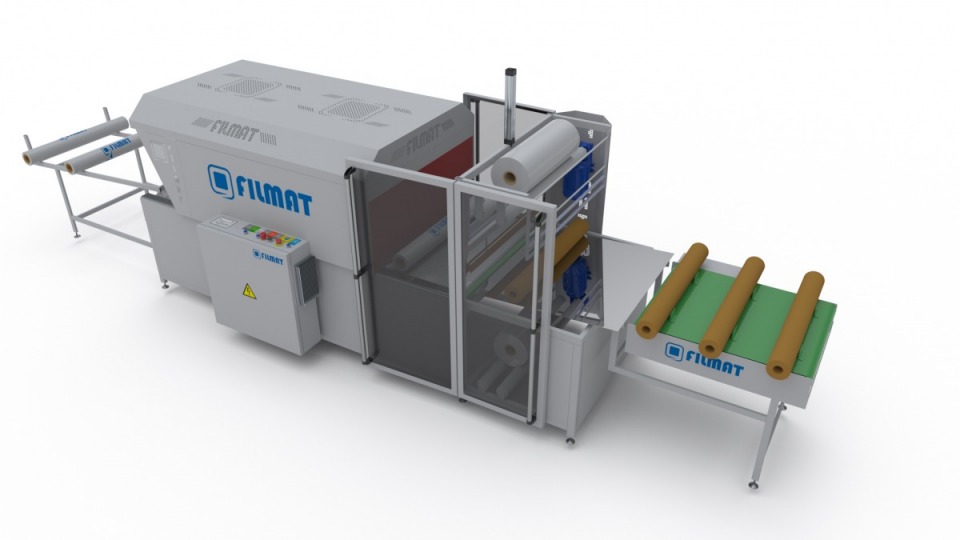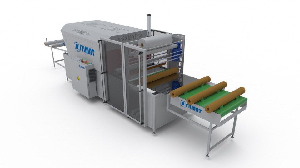 Maszyna przystosowana do pracy ciągłej w linii produkcyjnej do pakowania rolek, tulei, itp.